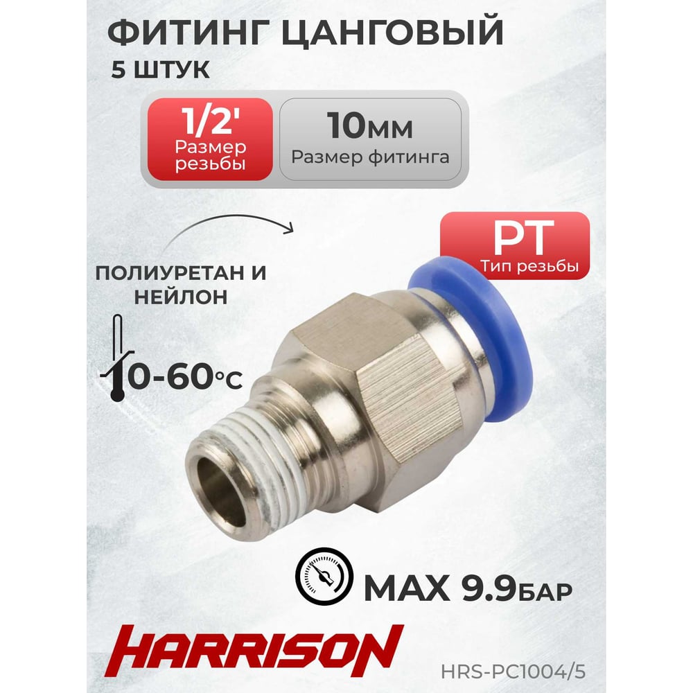 Фитинг цанговый прямой с наружной резьбой R1/2", 5 шт HARRISON HRS-PC1004/5