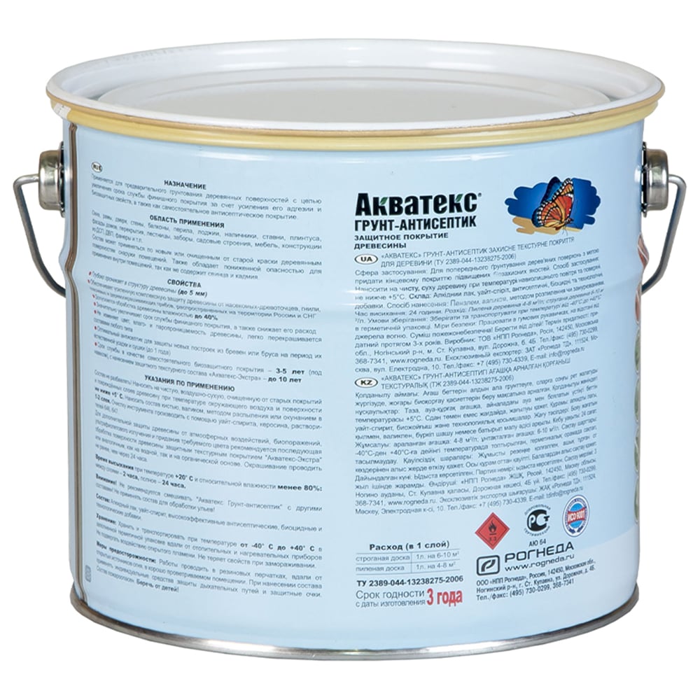 | Состав | алкидные смолы, уайт-спирит, высокоэффективные антисептики, фунгициды и инсектициды, технологические добавки |