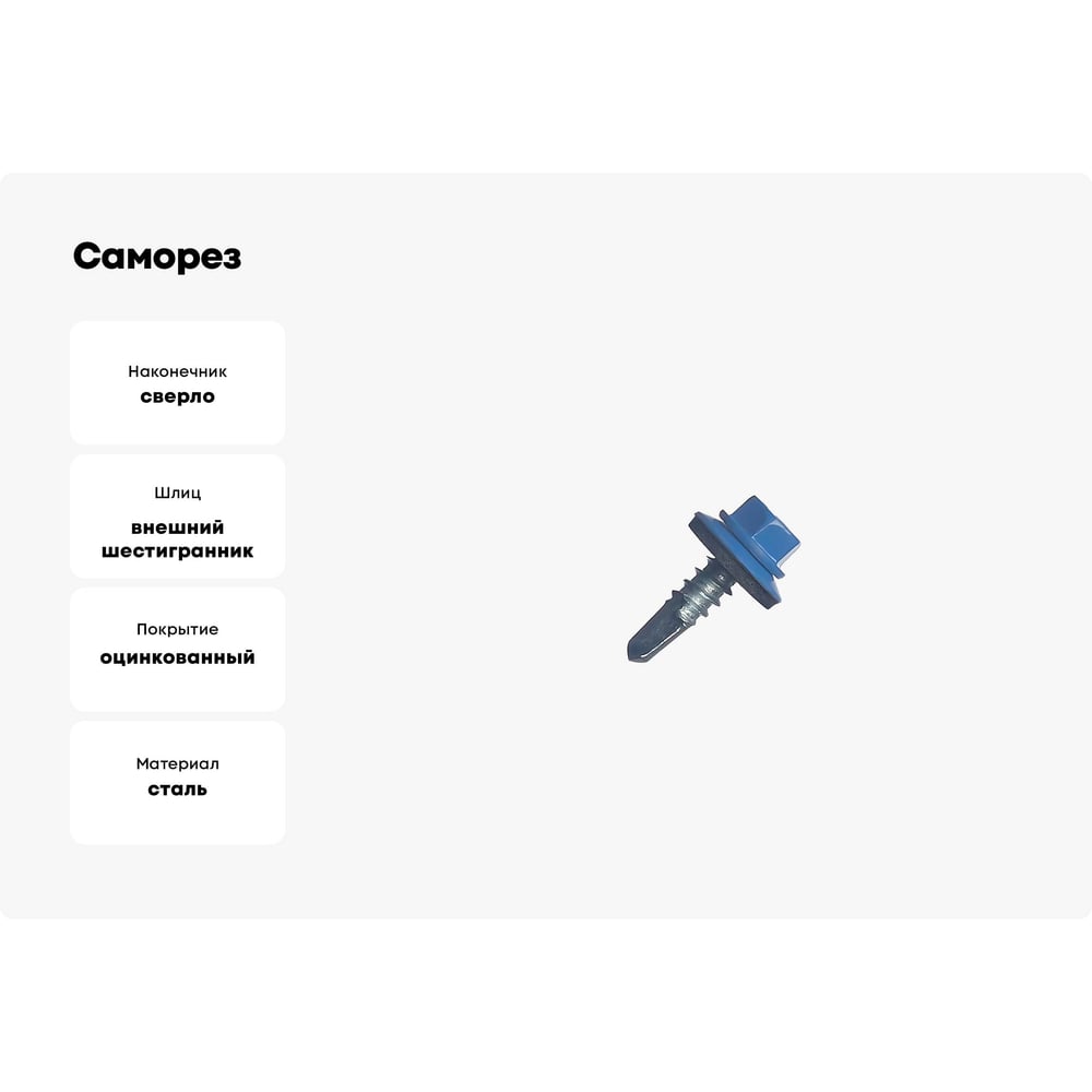Саморез кровельный МЕТАЛЛСЕРВИС 5,5x19 RAL 5005 сигнальный синий, по металлу, 60 шт., коробка с окном МС 1271107