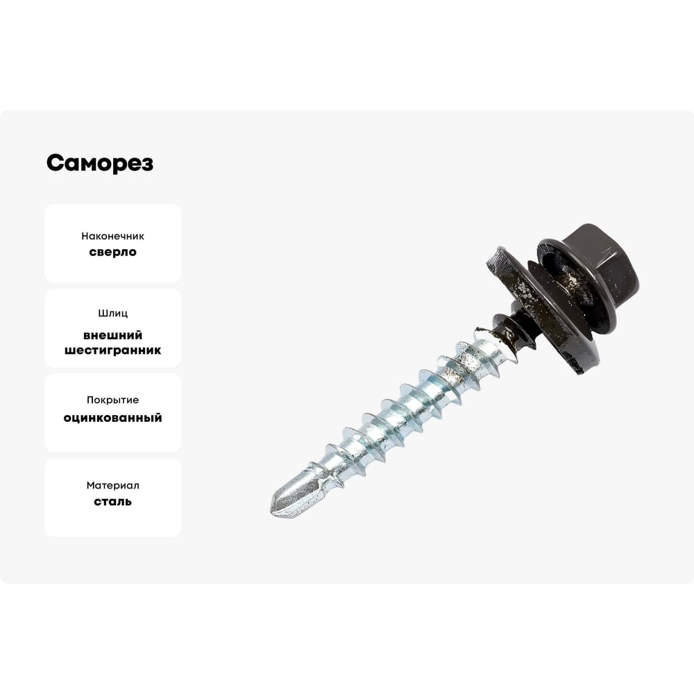 Саморез кровельный МЕТАЛЛСЕРВИС 4,8x29 RAL 8019 серо-коричневый, по дереву, 60 шт., коробка с окном МС 1271104