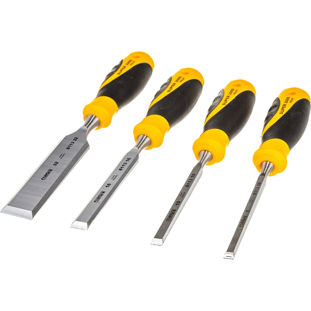 Набор из 4 плоских стамесок с ручкой NAREX SUPER 2009 LINE PROFI 8, 10, 16, 32 мм 860601