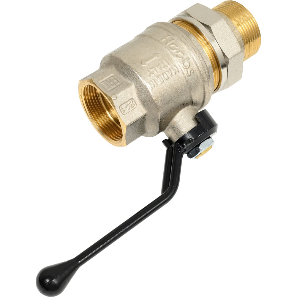 Кран шаровой латунный с американкой Hoobs НР/ВР 1'1/2'' рычаг алюм. чёрный, 1 шт/уп. 15126H