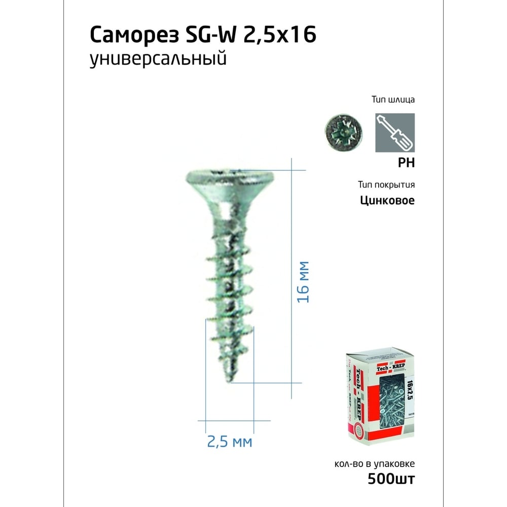 Оцинкованные универсальные саморезы Tech-Krep 16х2,5 мм 500 шт. 102157