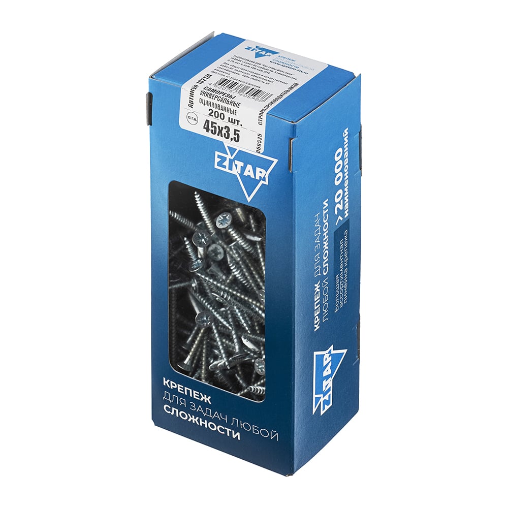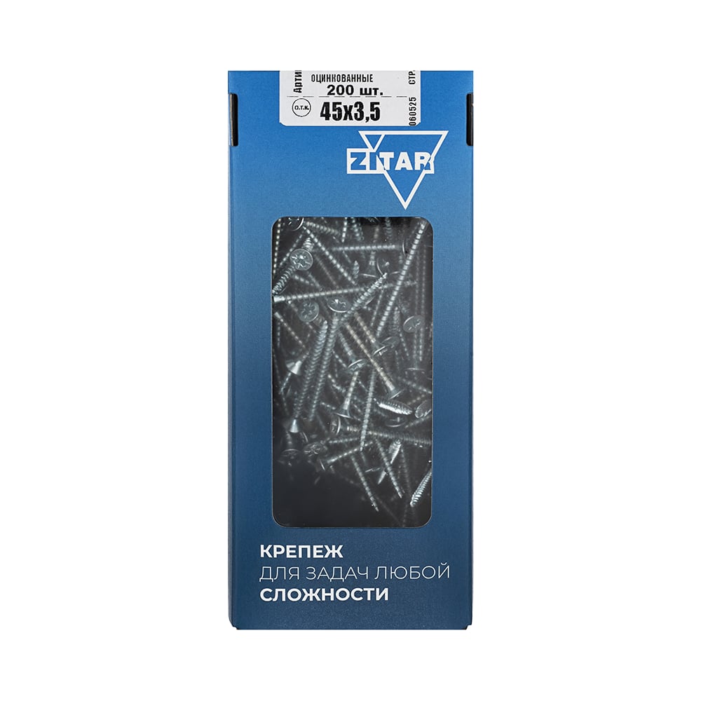 Универсальные саморезы Zitar 45x3,5 мм 200 шт оцинкованные коробка с окном Tech-Kr 102174