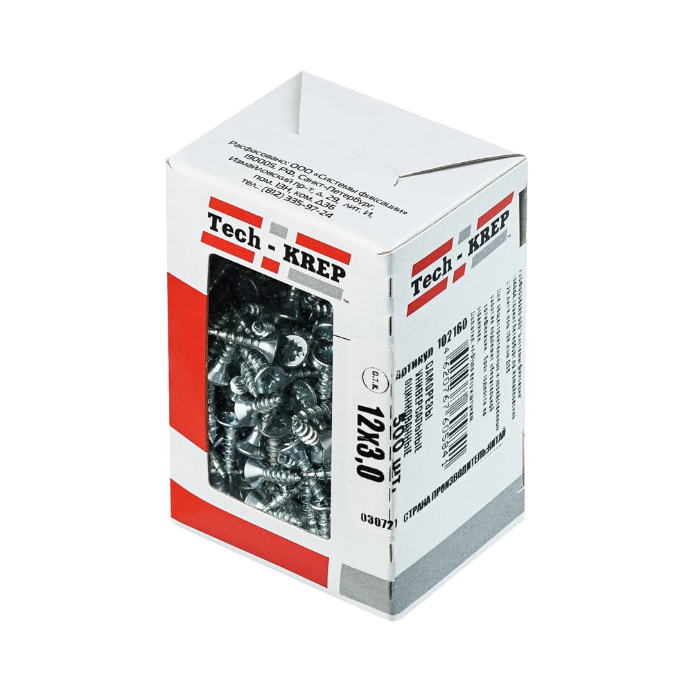 Универсальные саморезы Zitar 12x3,0 мм 500 шт оцинкованные коробка с окном Tech-Kr 102160