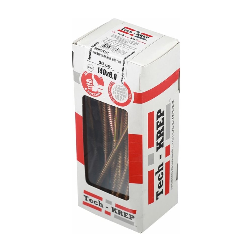 Универсальный саморез Tech-Krep 140х6,0 мм 50 шт желтый, коробка с окном 102279