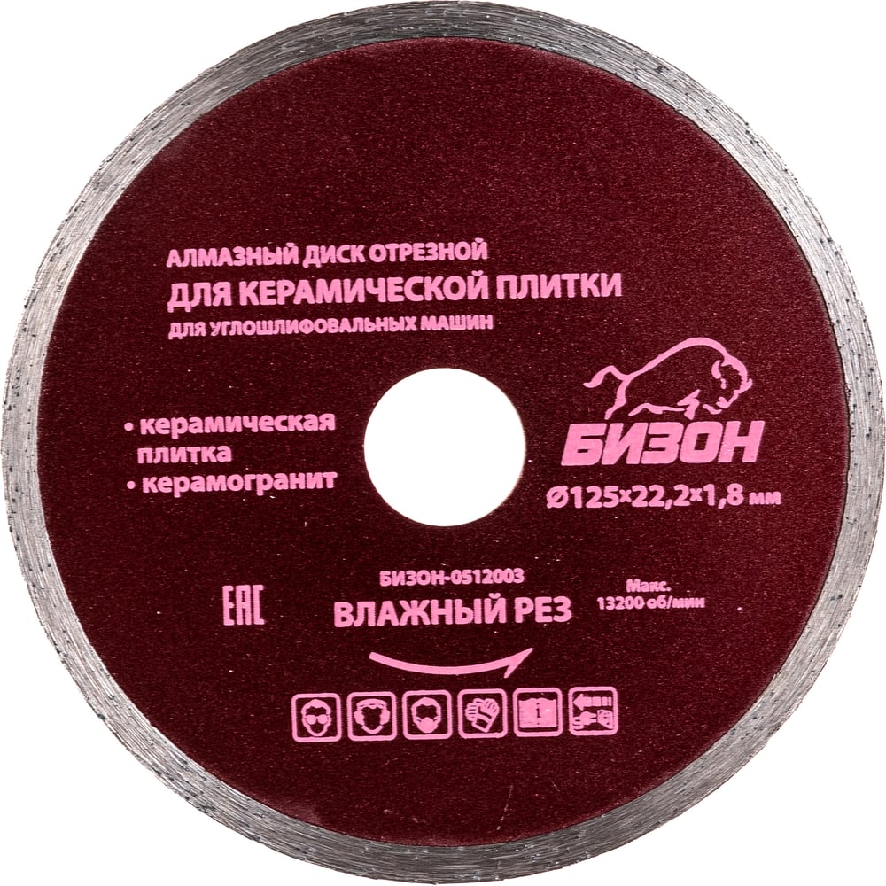 Диск алмазный отрезной по керамической плитке (125х22.2 мм) БИЗОН 0512003
