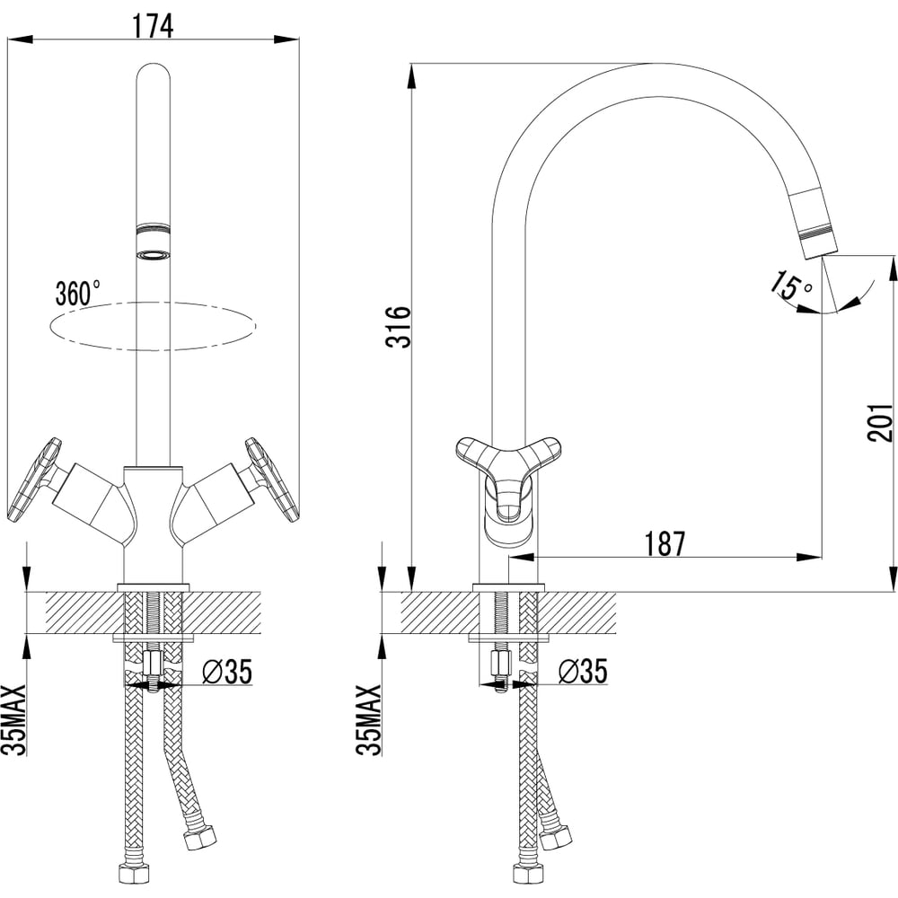 Покрытие глянцевое Цвет сатин Тип установки настольный Стиль ретро Материал корпуса латунь Поворотный излив да Назначение для кухни Тип крепления на шпильку Гибкий излив нет Длина излива 187 мм Высота смесителя 316 мм Лейка нет Термостат нет Встраиваемый нет Подводка в комплекте гибкая Аэратор да Переключатель на фильтр нет Тип смесителя двухрычажный Форма излива воды традиционная Запорный клапан керамическая кран-букса Форма смесителя округлая Выдвижной излив нет Излив есть Складной нет С щеткой нет Двойной излив нет Размер крепления G1/2 Направление струи под углом Диаметр отверстия в раковине 35 мм Расположение термостата без термостата