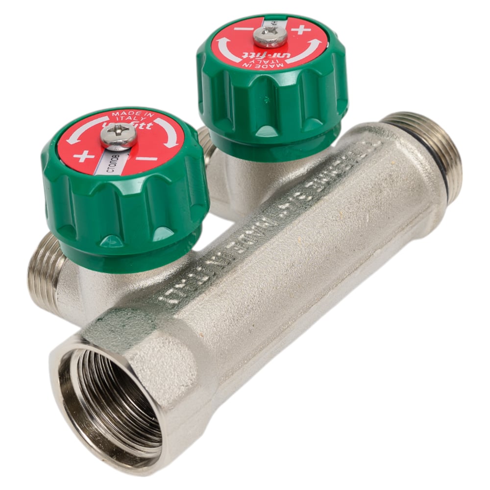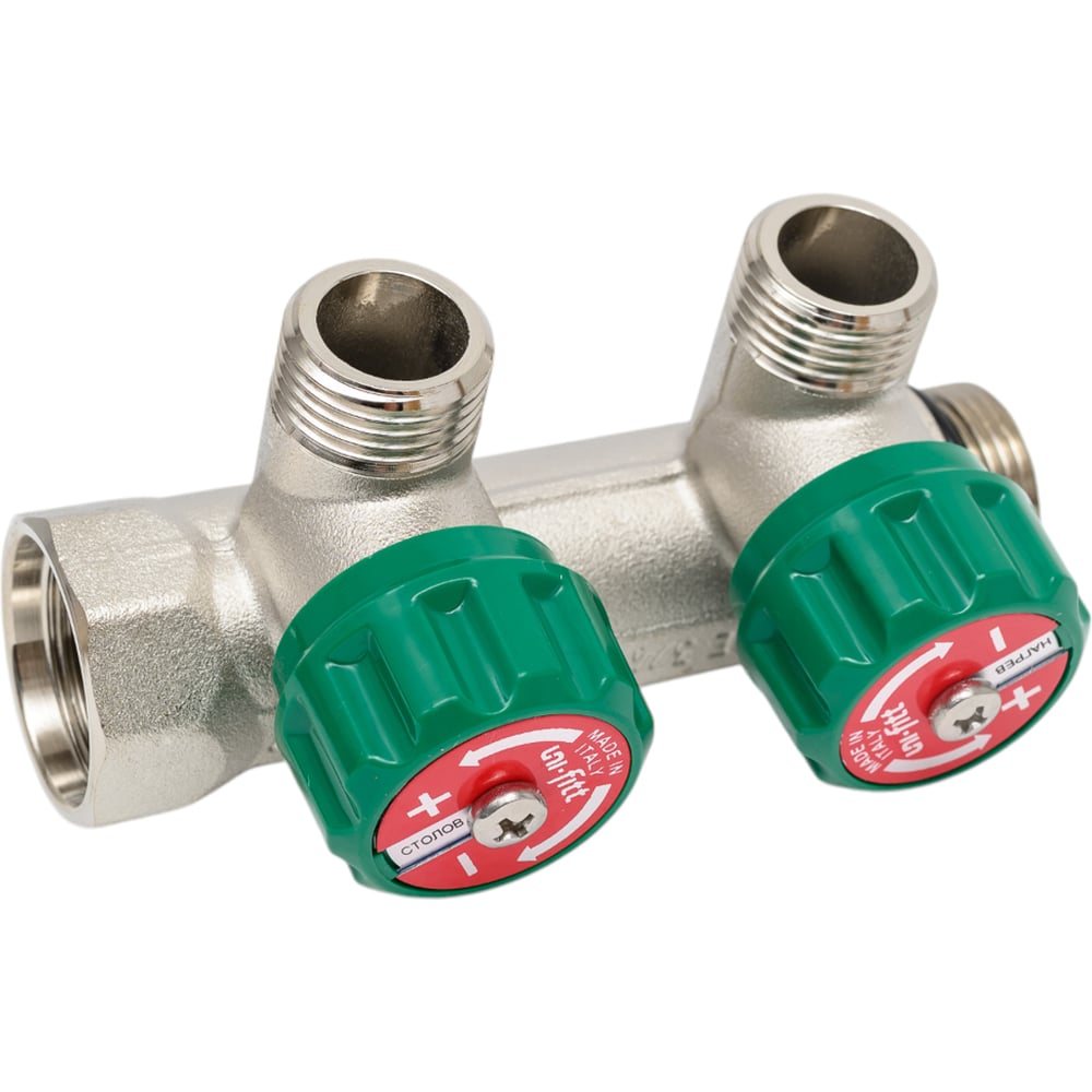 Коллектор Uni-Fitt НВ 3/4", 2х1/2", Н 50 мм с выходами под 90 град, под плоскую прокладку 411N3220