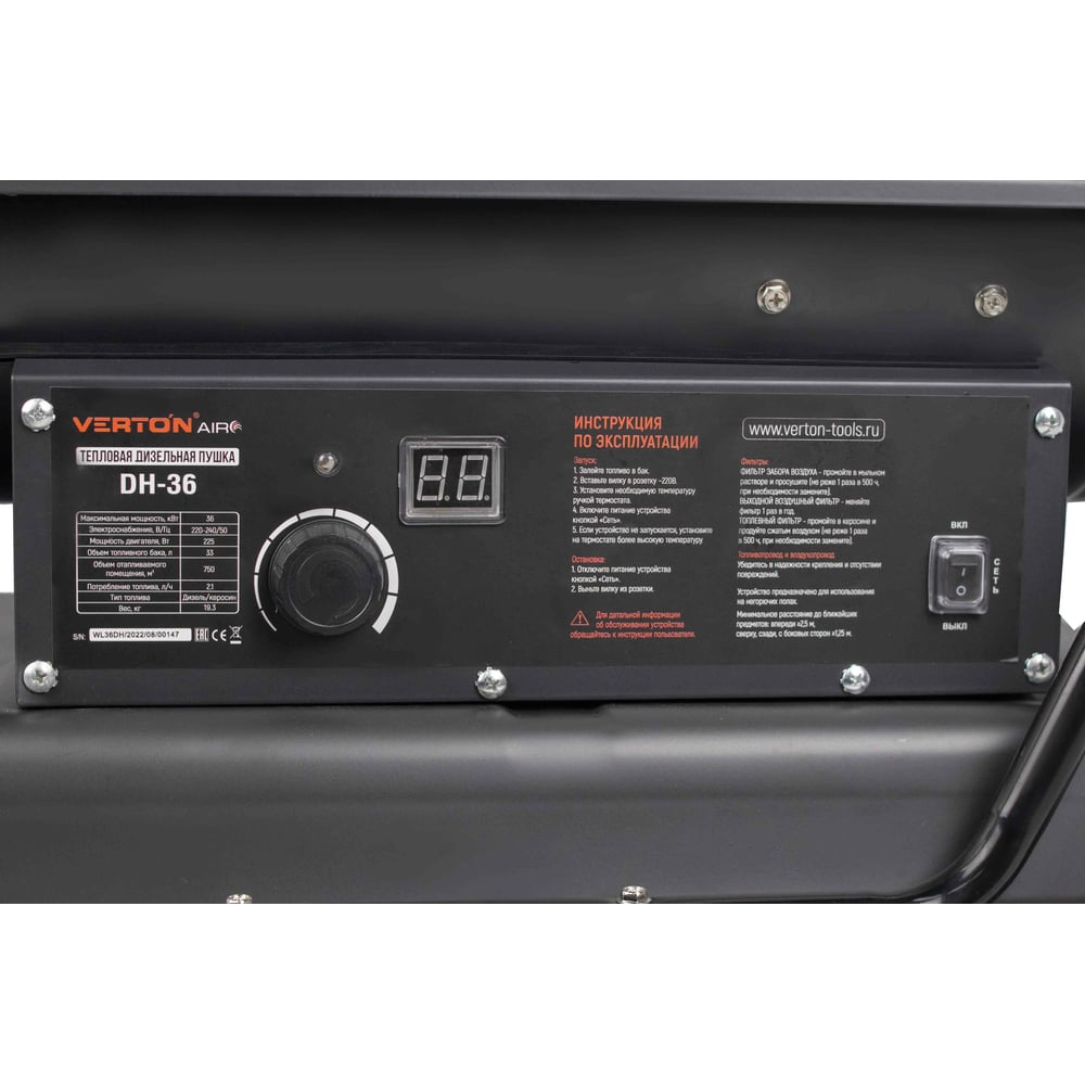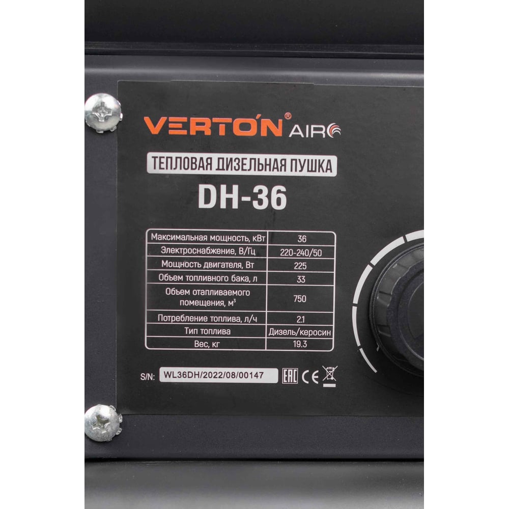 Дизельная пушка VERTON Air DH-36 36кВт, 750 м3/ч., 2,1 л/ч, 01.5985.6758
