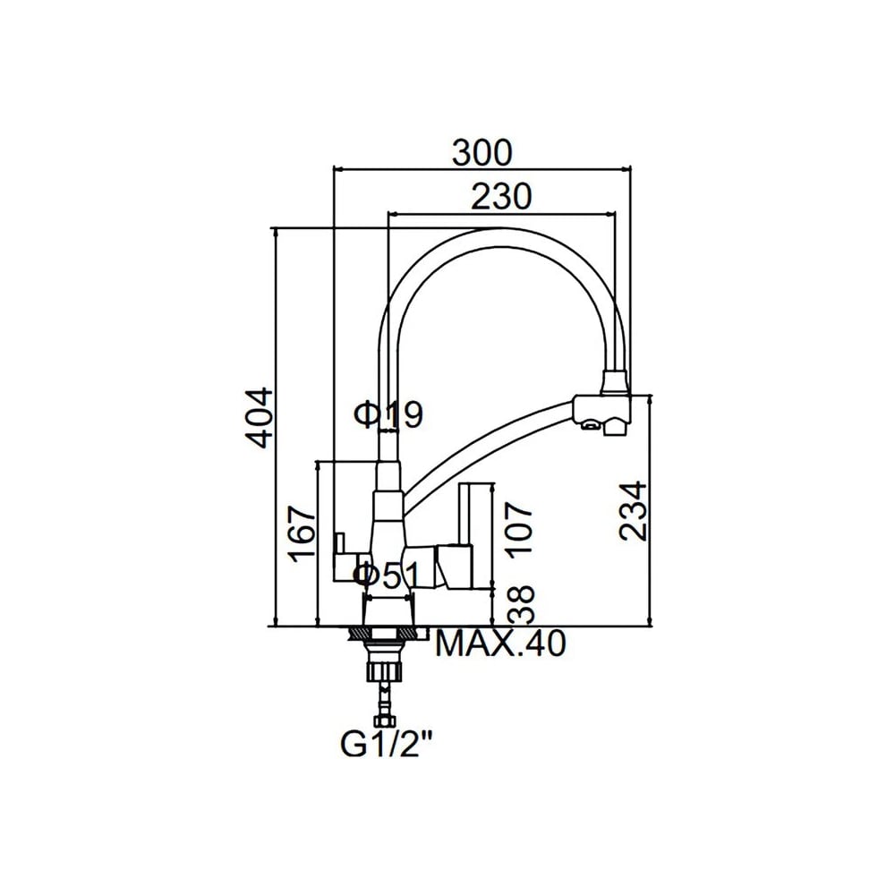Смеситель WISENT для кухни с гибким изливом и подводкой питьевой воды /черный/ W4855-22-2