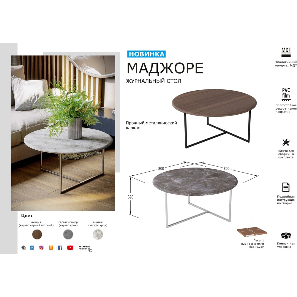 Журнальный стол Мебелик Маджоре серый мрамор/хром 6355