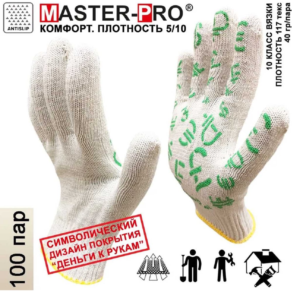 Рабочие перчатки Master-Pro® ФОРЕКС 100 пар, 10 класс вязки 2310-FRX-100-PVC