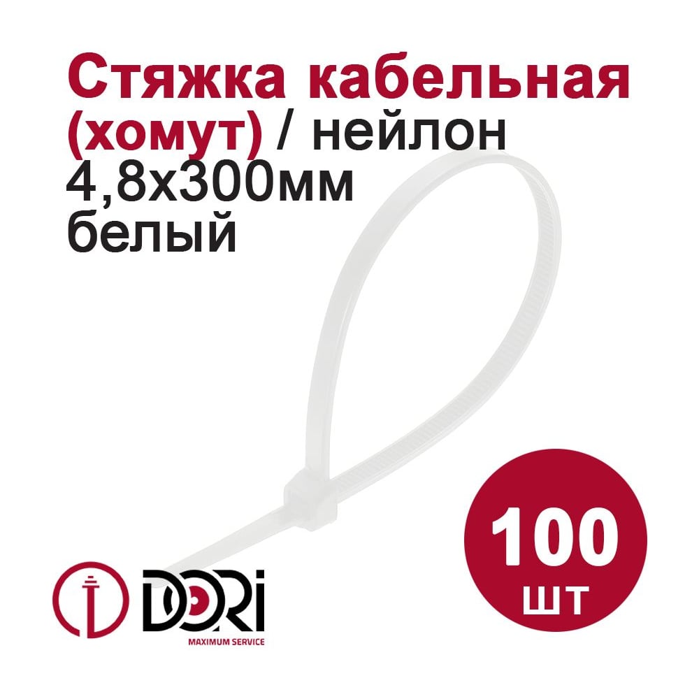 Нейлоновый хомут DORI 4,8x300 мм белый 100 шт 41771