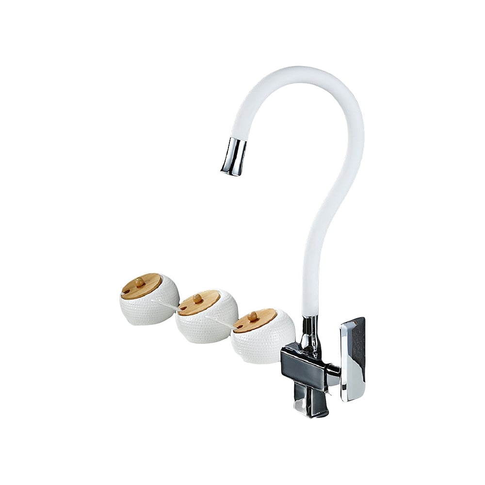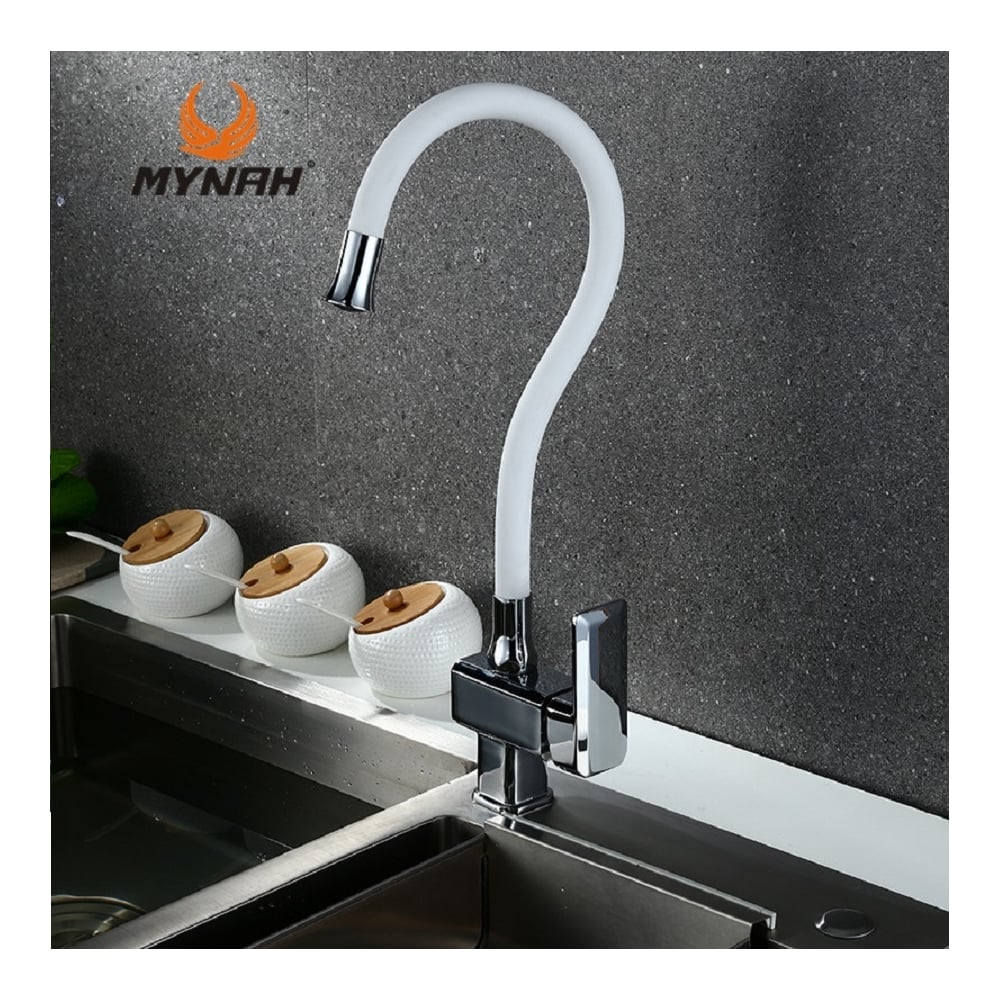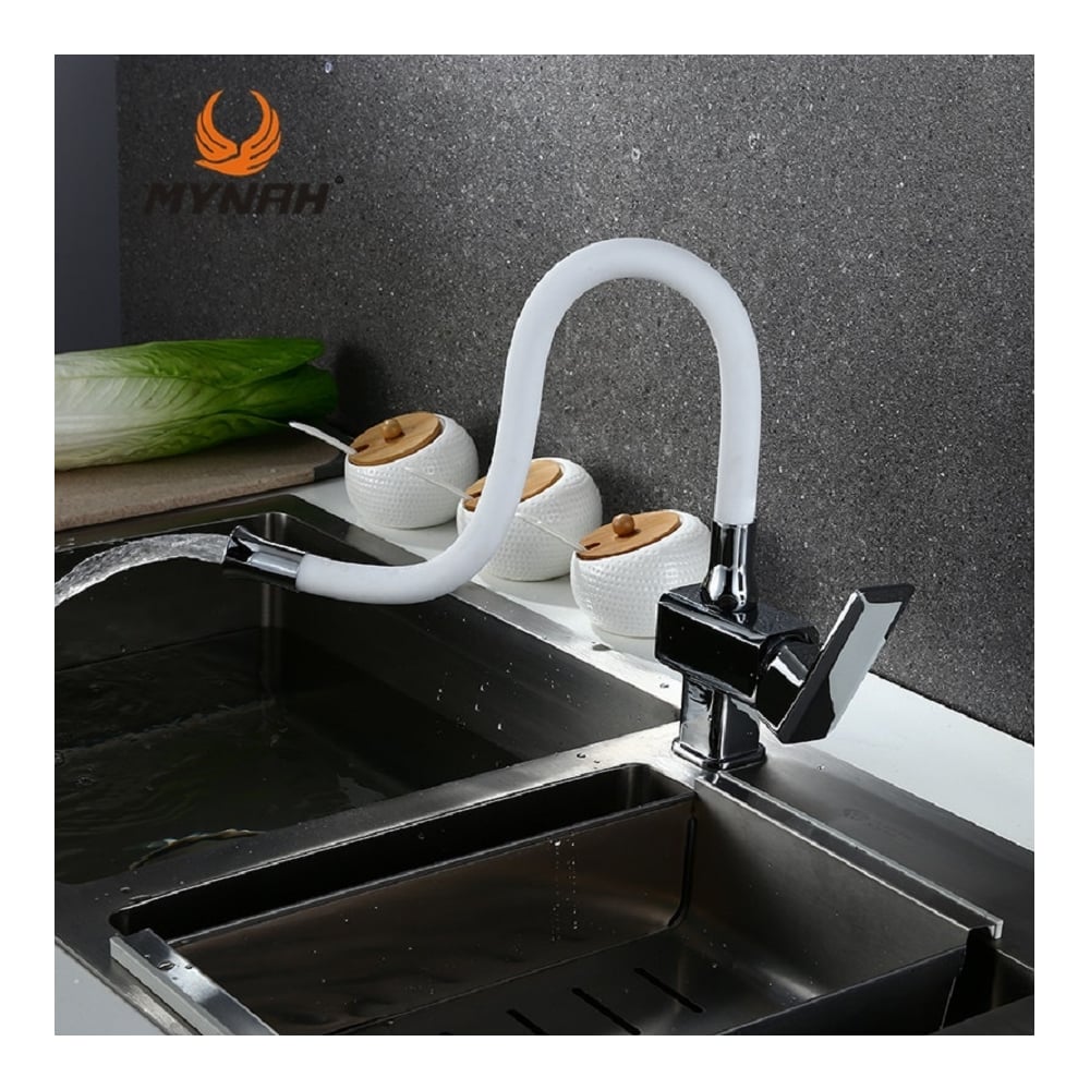 Смеситель для кухни MYNAH белый, с гибким изливом, керамический картридж M5849L