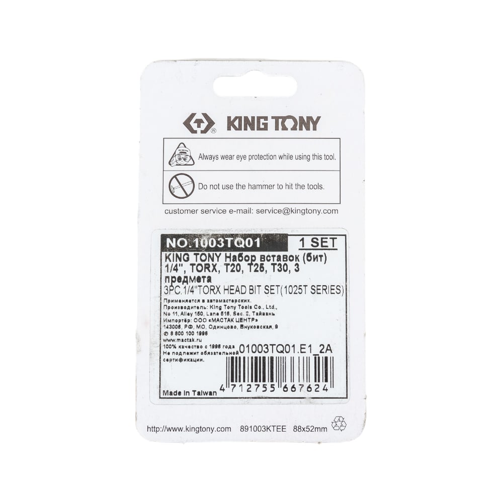 Набор вставок (бит) 1/4", TORX, Т20, Т25, Т30, 3шт KING TONY 1003TQ01