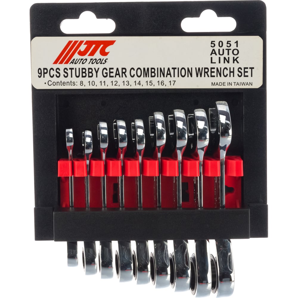 9 ключей с 72-зубцовым механизмом и углом перемещения в 5°: 8, 10, 11, 12, 13, 14, 15, 16, 17 мм;