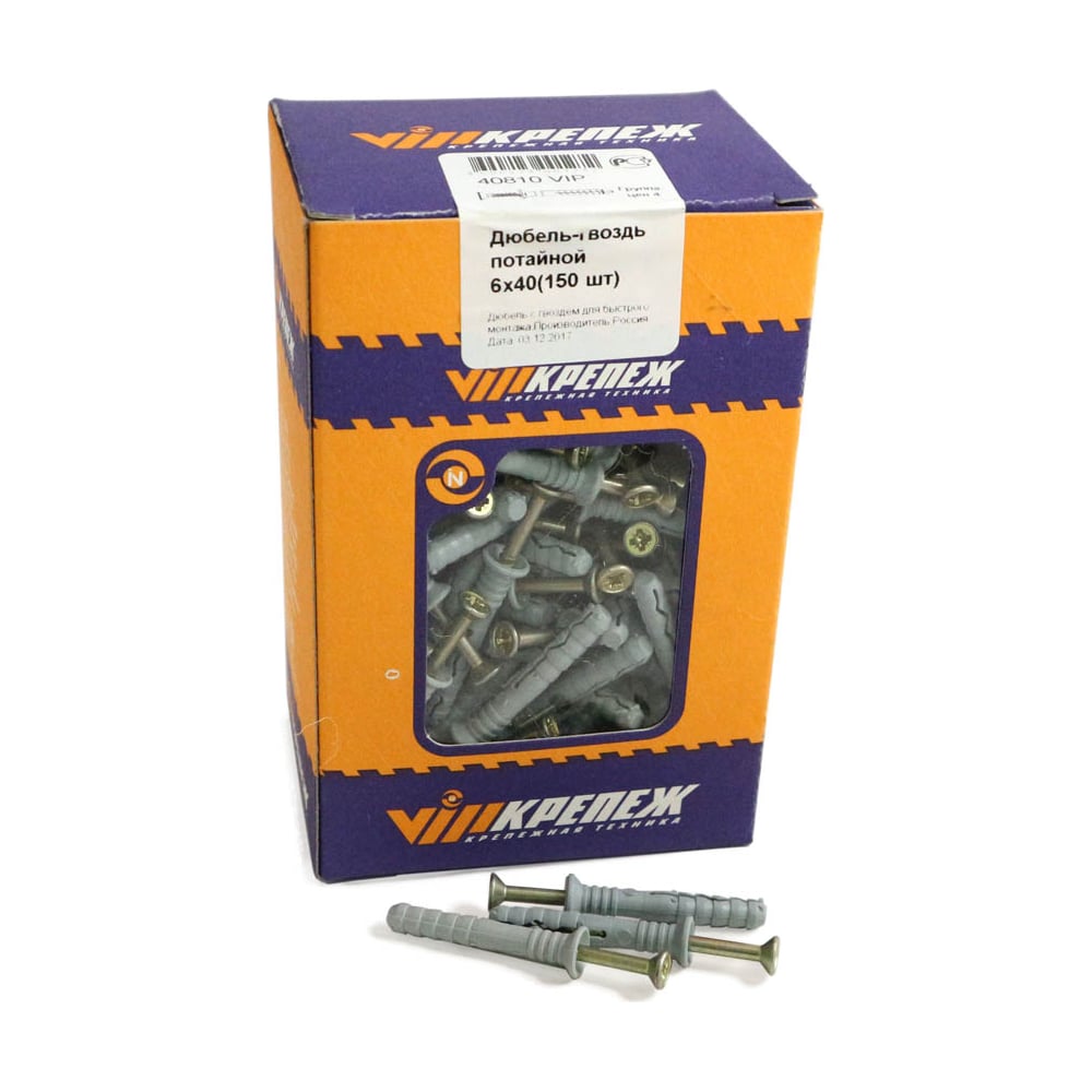 Дюбель-гвоздь VIPКрепеж потайной бортик 6х40 150 шт 40810 VIP