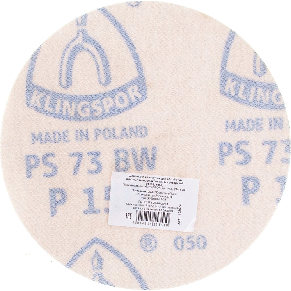 Круг шлифовальный на липучке для обработки красок, лаков и шпаклевок (125 мм; Р150) KLINGSPOR 302074