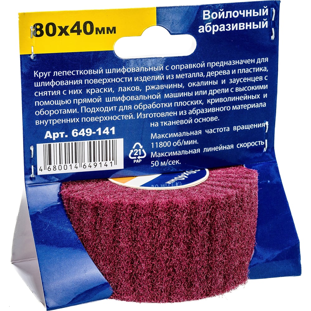Круг войлочный с оправкой (80х40 мм) ПРАКТИКА 649-141