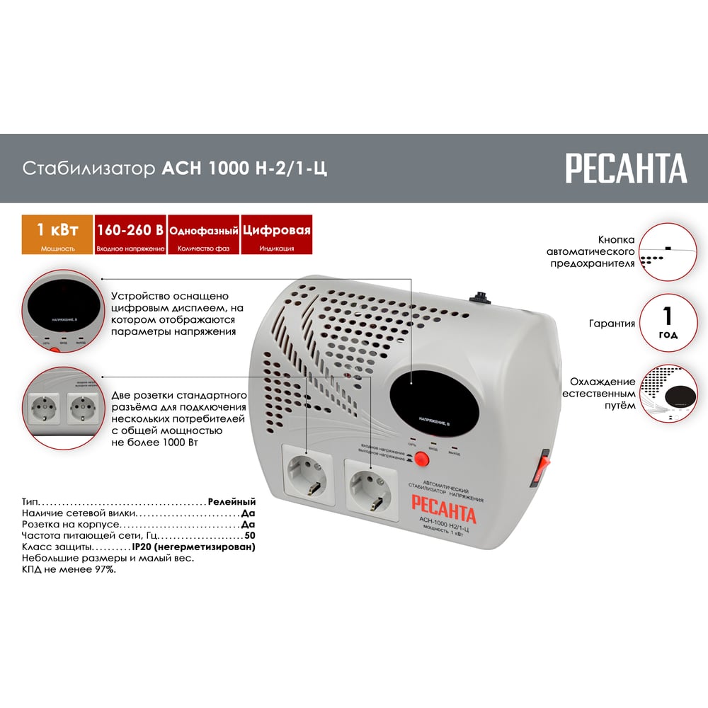 Стабилизатор напряжения Ресанта АСН 1000 Н2/1-Ц