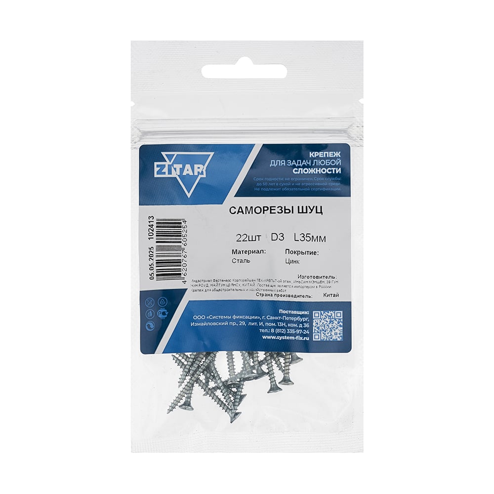 Саморез ШУц с потайной головкой 3,0x35 мм, 22 шт., пакет Zitar 102413