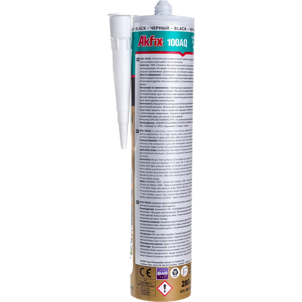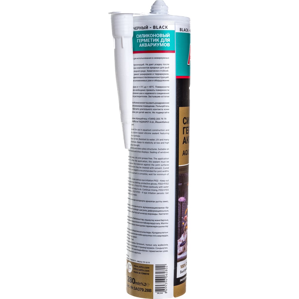 Аквариумный силиконовый герметик Akfix 100AQ черный, 280 мл SA079.28B
