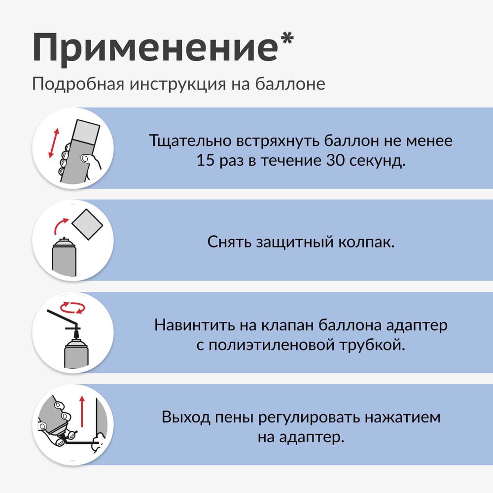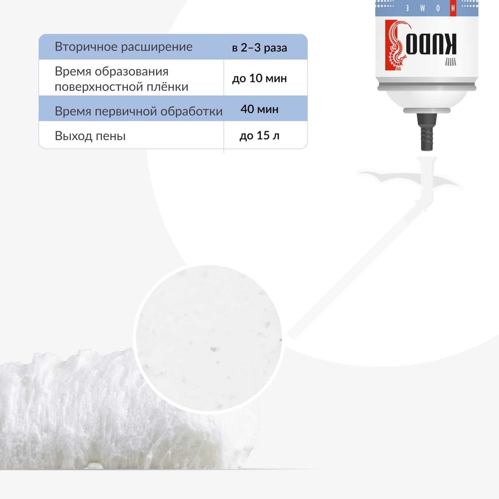 | Объем пены в баллоне (выход) | 15 л |