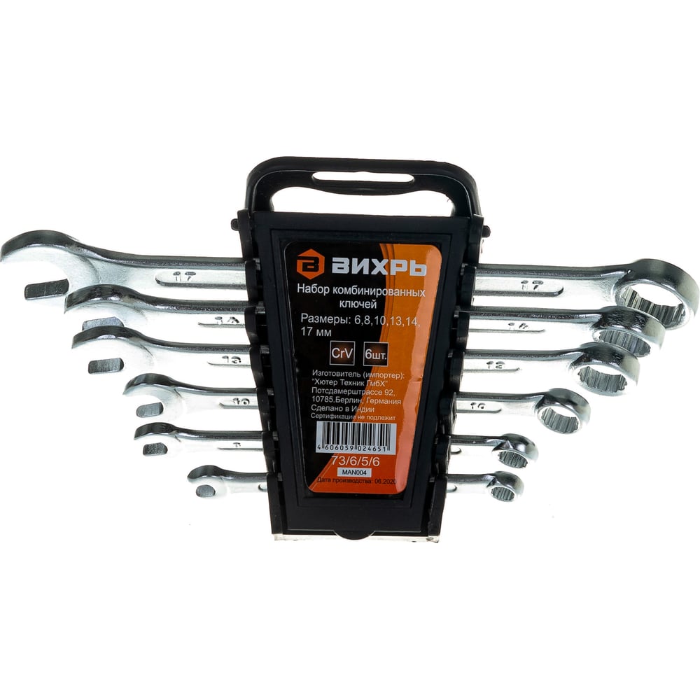 Набор комбинированных ключей 6 шт. 6 - 17 Вихрь 73/6/5/6