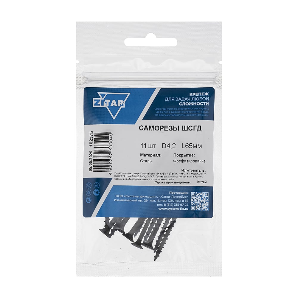 Саморез ШСГД 4,2x65 11 шт пакет Zitar 102375