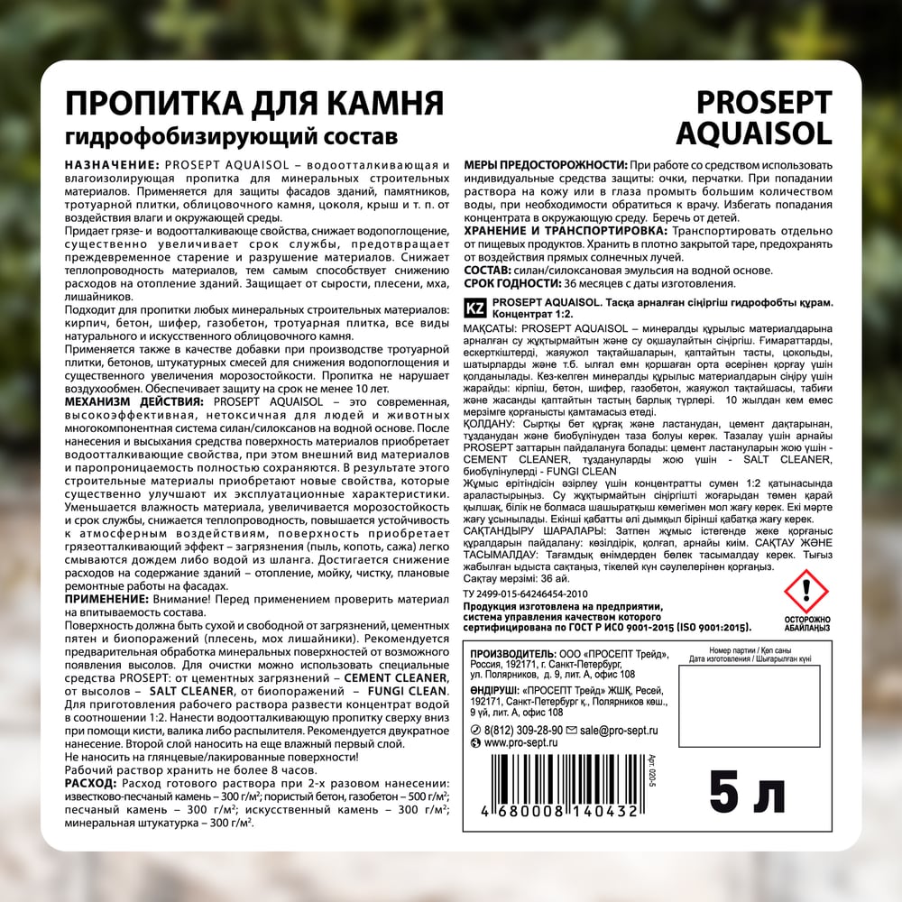 Пропитка для камня PROSEPT AQUAISOL концентрат 1:2 5 л 020-5