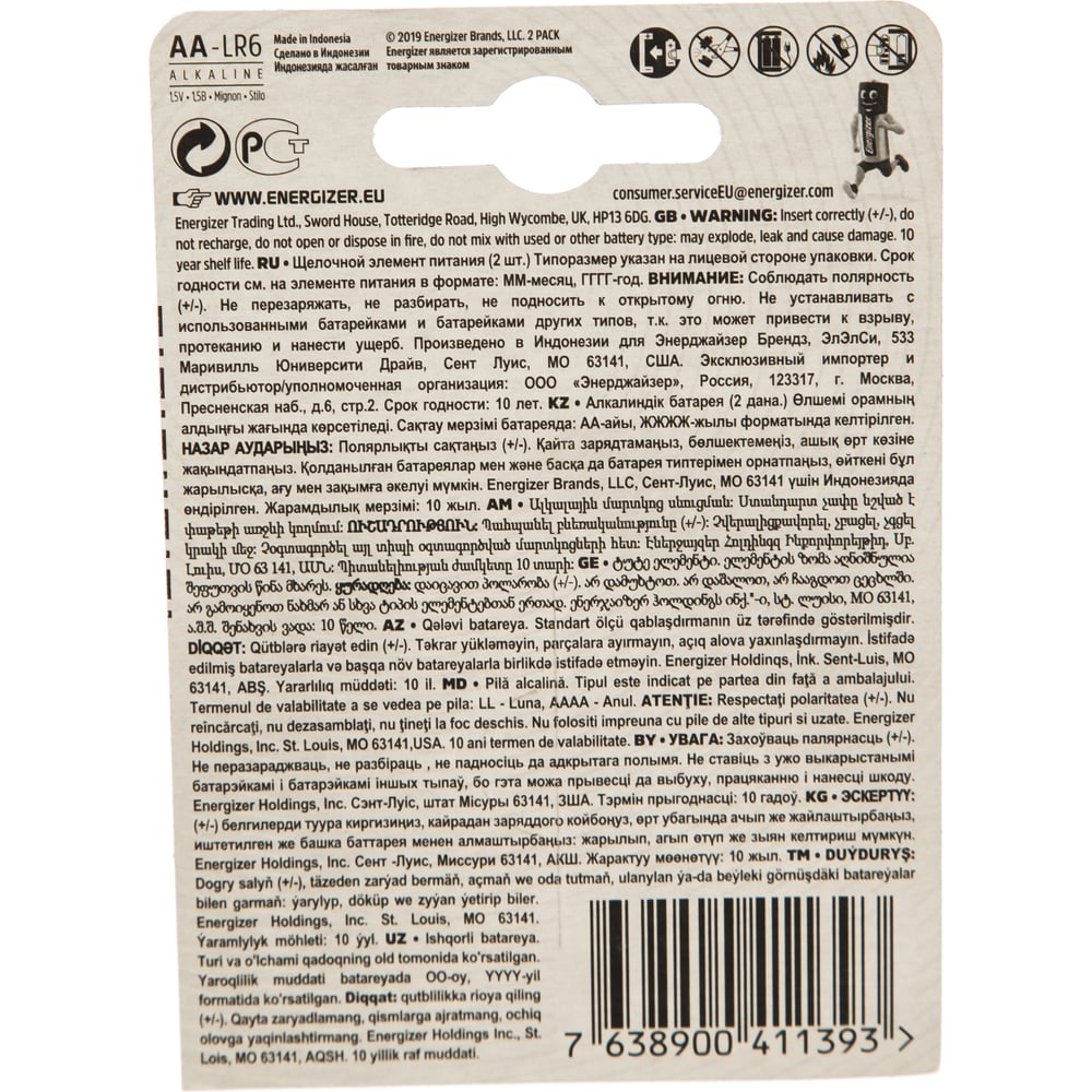 Щелочная батарейка Energizer LR6 AA MAX 1.5В бл/2 7638900437614