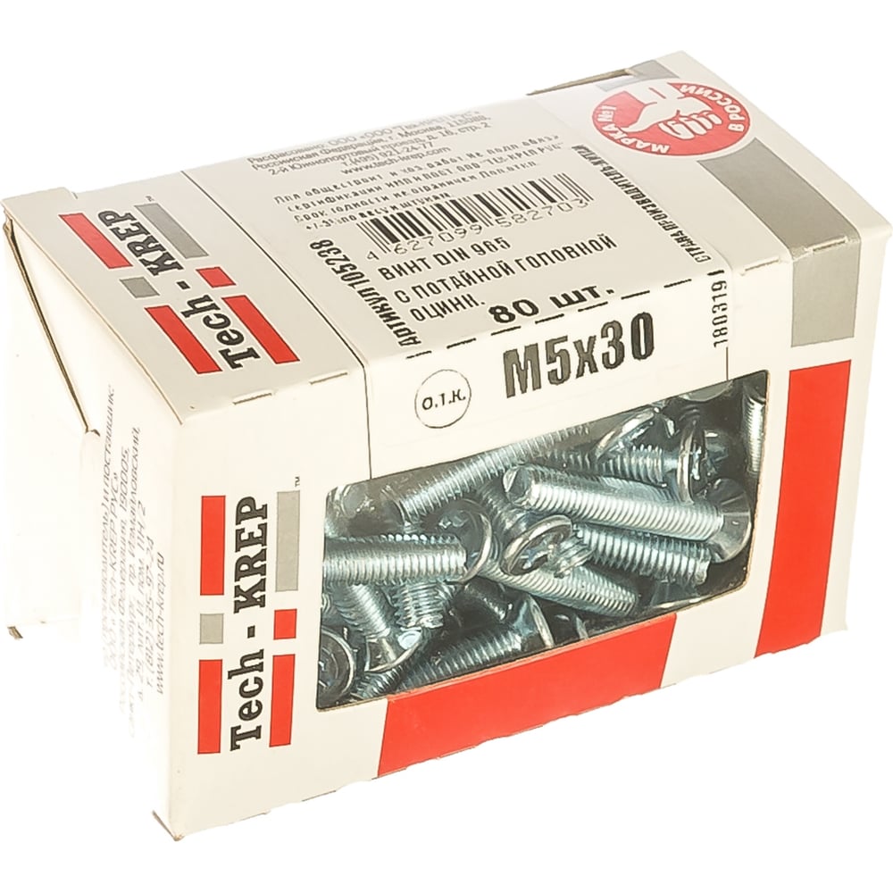 Винт DIN 965 с потайной головкой, оцинкованный М5х30, 80шт - коробка Tech-Krep 105238