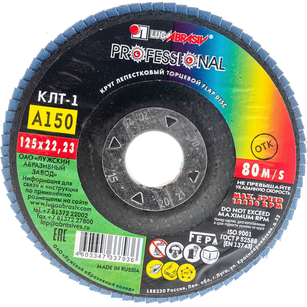 Круг лепестковый торцевой плоский КЛТ1 (125х22 мм; А150; 14А 10/Р150) Луга 4603347337936