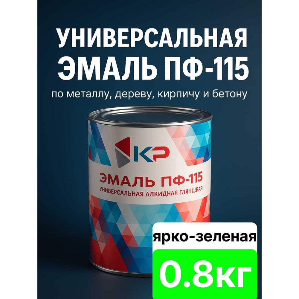 Краска быстросохнущая, атмосферостойкая КР ПФ-115 ярко-зеленая, 0,8 кг 4610044290570