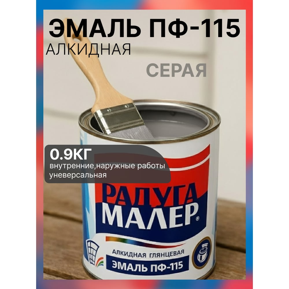 Краска быстросохнущая, атмосферостойкая Радугамалер ПФ-115 ГОСТ серая 0,9 кг 4650001273062