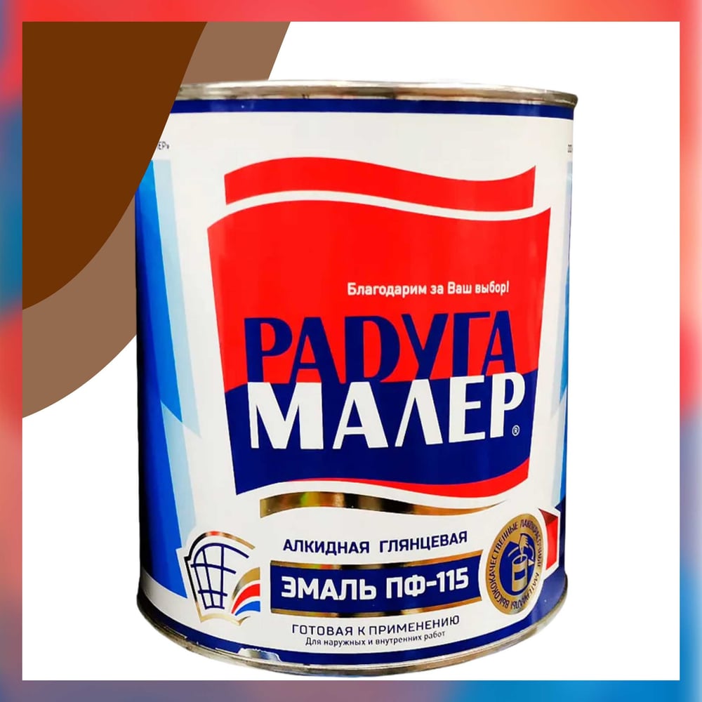 Краска быстросохнущая, атмосферостойкая Радугамалер ПФ-115 ГОСТ коричневая 0,9 кг 4640000602741