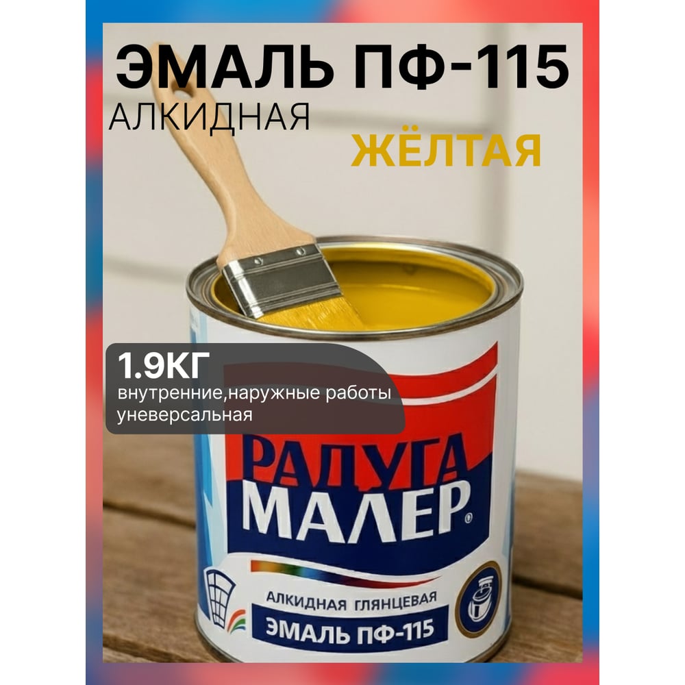 Краска быстросохнущая, атмосферостойкая Радугамалер ПФ-115 ГОСТ желтая 0,9 кг 4650001272010