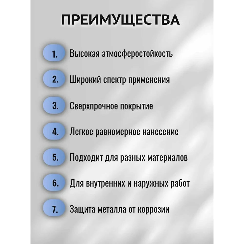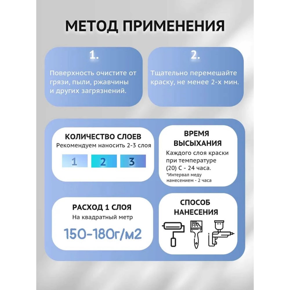 Цвет голубой Тип алкидная Вес нетто 0.8 кг Серия Status Влагостойкость да Без запаха нет Вид тары металлическая банка Разбавитель уайт-спирит/скипидар/сольвент Способ нанесения кисть/валик/краскораспылитель Степень блеска глянцевый ГОСТ нет Для кирпича да Для бетона да Для металла да Для дерева да Основания бетон/кирпич/камень/металл/дерево Место применения внутри и вне помещения Возможность колеровки нет Для пластика нет ТУ 2312-028-89222101-2017 Быстросохнущая нет Время полного высыхания 24 ч Для медицинских учреждений нет Для детских учреждений нет Фактурная нет Молотковая нет Для стен и потолков да Для пола нет Металлик нет Огнезащитность нет Оттенок бирюзовый Марка ПФ-115 Моющаяся да Экологическая сертификация нет Покрытие на 1 кг 5-6 м² Расход краски 0.1-1.8 кг/м² Срок годности (с даты изготовления) 18 мес