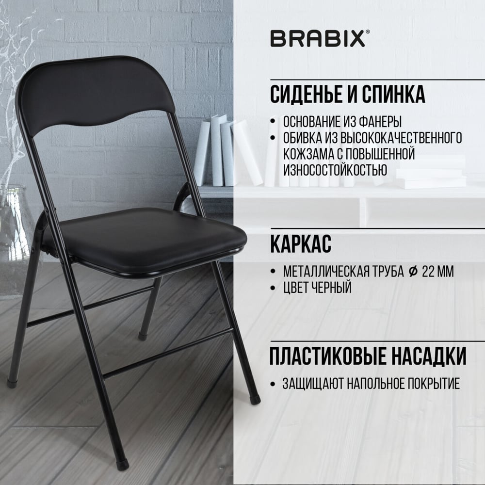 Складной стул для дома и офиса BRABIX Golf CF-007 черный каркас, кожзам черный, 531565