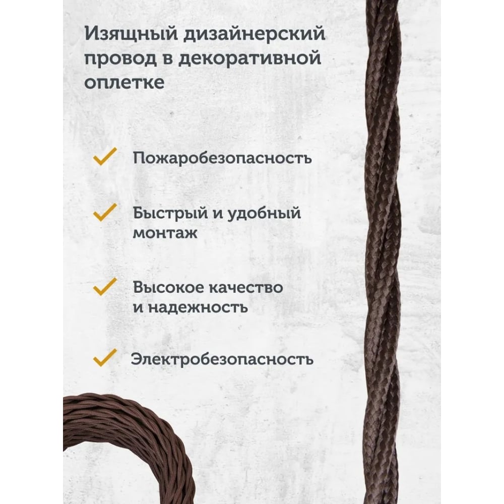 Силовой кабель Retro Electro, ретро, 3х2,5, коричневый, длина бухты 50 2254760