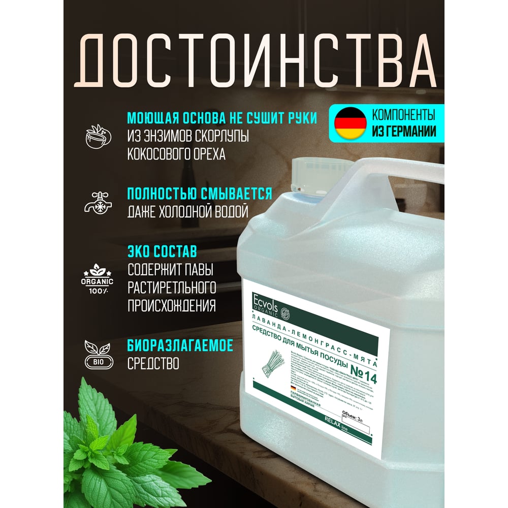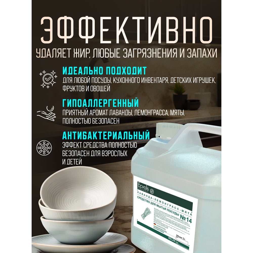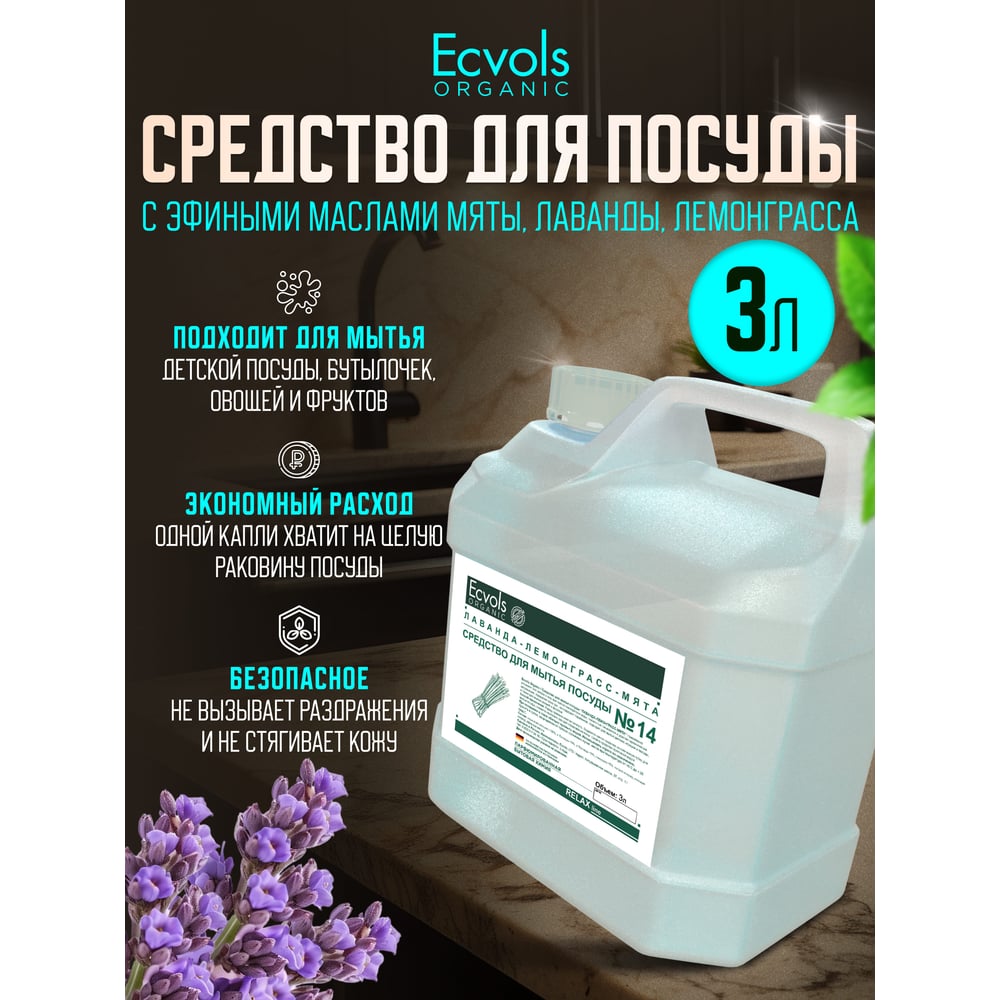Средство для мытья посуды Ecvols №21 с эфирными маслами Лаванда Мята, гипоаллергенное, канистра 3 л 00.21di3000