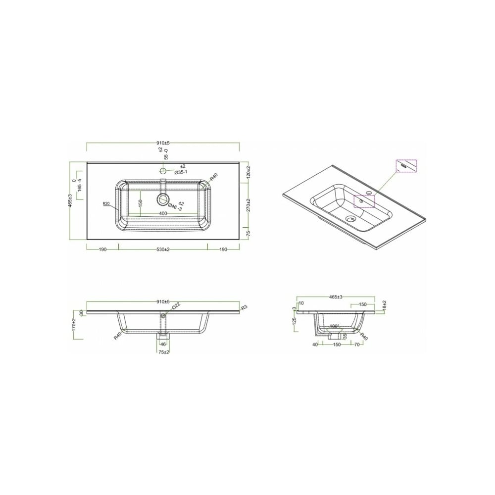 | Ширина раковины | 910 мм |