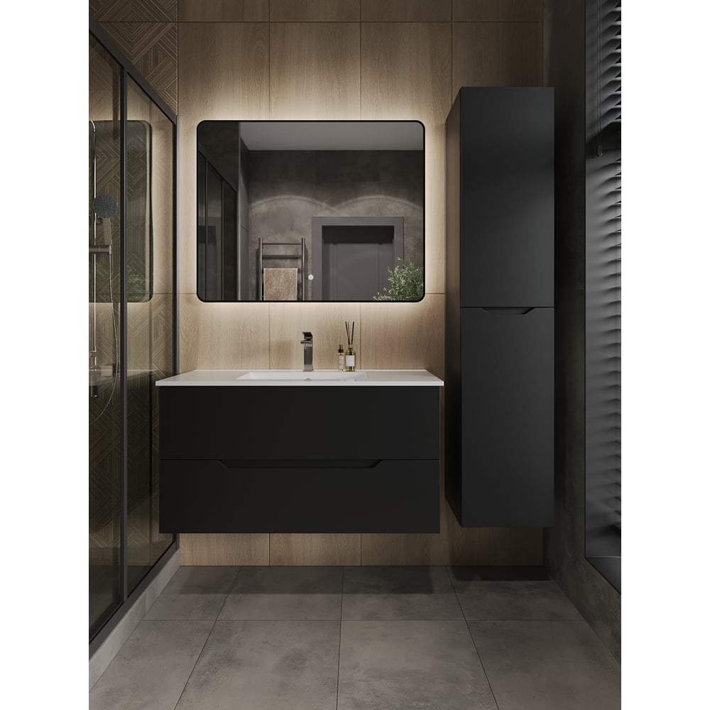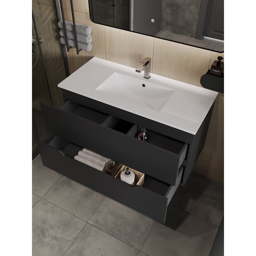 Подвесная тумба Orange Line 100 черная, с раковиной Li-100Tub+Ra