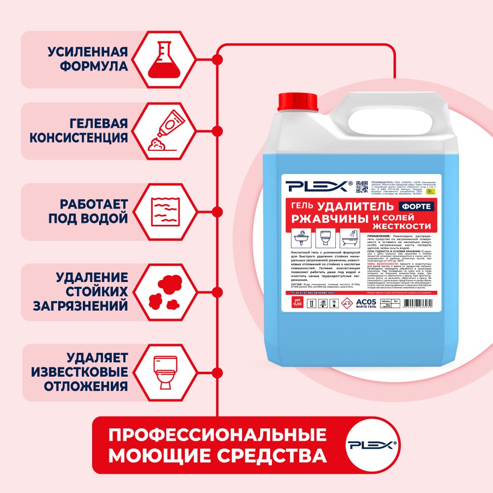 Гель для удаления известкого налета и ржавчины PLEX 5 л УТ000007991