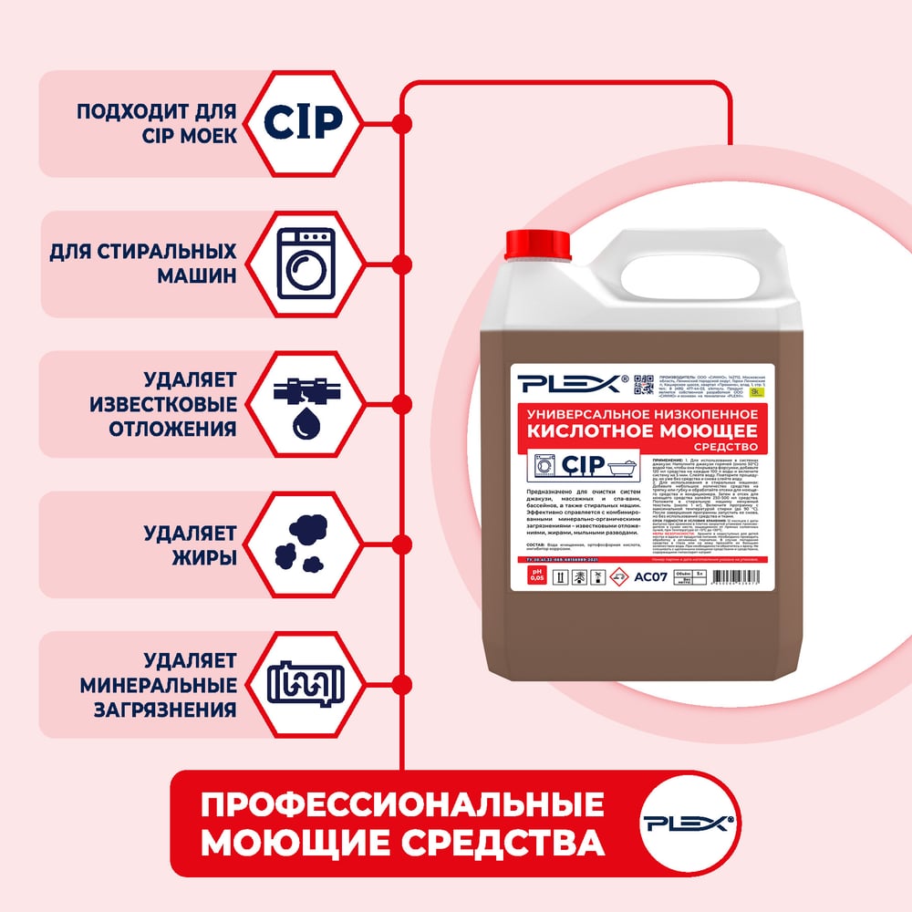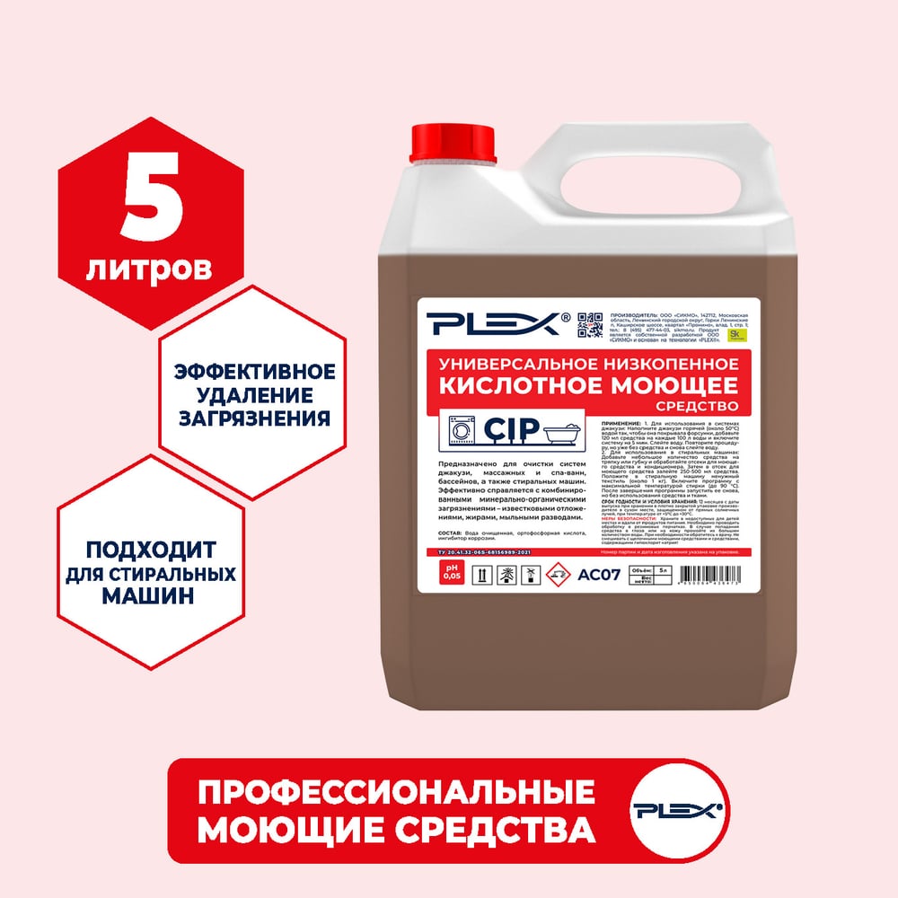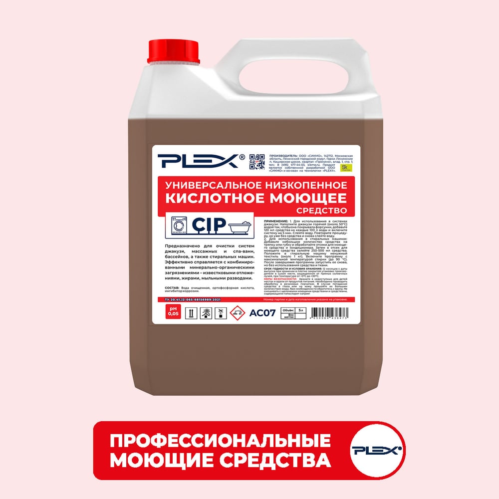 Универсальное кислотное низкопенное моющее средство PLEX УТ000005630