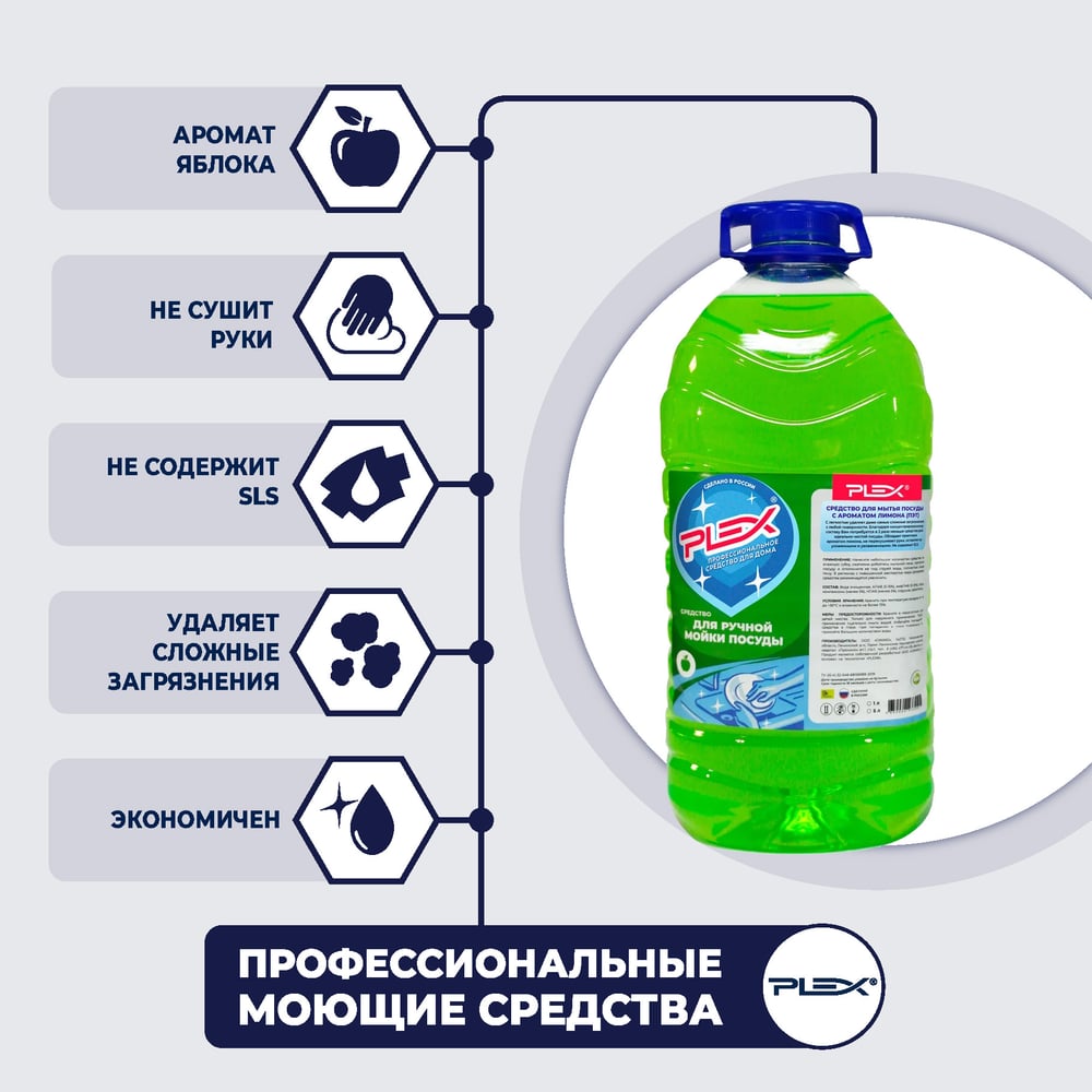 Средство для мытья посуды PLEX с ароматом яблока, 5 л УТ000005966