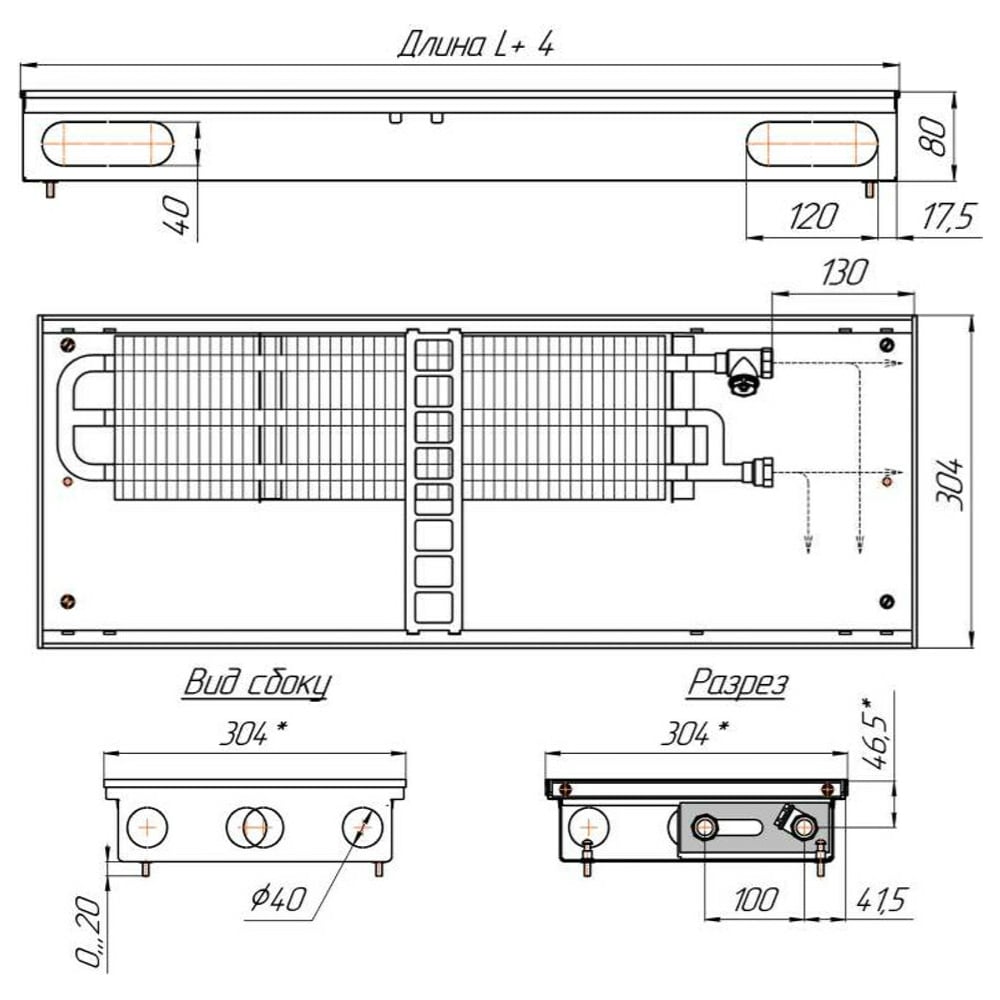 Конвектор КЗТО Бриз 300*80*2500 U (5Ал 12) NEW БР30080*2500UКНР5АЛ12Ч
