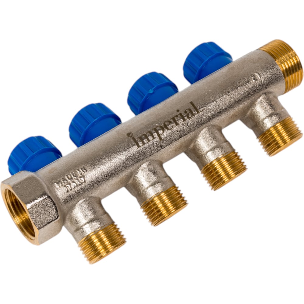 Коллектор с вентильными кранами Imperial 3/4-1/2-4вых. никелированный (Италия) (35мм) 851.04