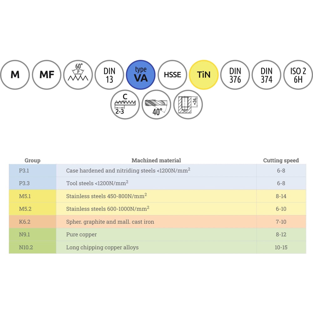 Метчик СпецТехИнструмент машинный М3 4260 din 376 rsp35 iso2 hsse tin sti STI041535332030000